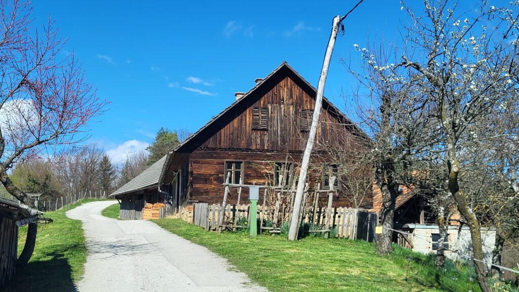 Kmečka domačija je imela za svoj razvoj veliko prostora, saj ga je v primerjavi z meščansko hišo tudi več potrebovala. Poleg stanovanjskih prostorov je potrebovala še prostor za živino, orodje in za shranjevanje izdelkov. Valvazor je pisal že o zidanih hišah, na njegovih bakrorezih pa vidimo tudi lesene hiše in enojne kozolce. Pri nas v Galiciji imamo še eno leseno hišo, v kateri še vedno živijo ljudje. Na Slovenskem lahko govorimo o petih tipih hiš in domačij. To so: